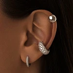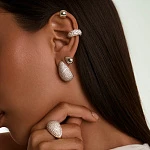 Этот кафф буквально окутывает ухо роскошным сиянием. Его элегантная форма, утонченно зауженная к концам, создает эффект динамичного движения, а сплошная россыпь белой шпинели изысканно сверкает.