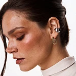 Кафф сочетает в себе объемную форму и утонченность. Он плавно сужается к концам, грациозно располагаясь на ухе. Миниатюрный насыщенно-зелёный фианит в огранке Круг становится тем самым магнетическим акцентом, который притягивает восхищённые взгляды.