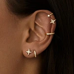 Кафф крепится с помощью удобной системы зажима без замка, обеспечивая надежную фиксацию на ушном хряще. Важно: украшение не предназначено для сгибания, чтобы сохранить целостность конструкции и крепление камней.