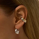 Этот массивный дутый кафф сочетает в себе холодное сияние серебра и роскошное золото в динамичной композиции. Его перекрещивающиеся полосы создают эффектную игру текстур и оттенков, где каждая линия — точный расчет, а каждый изгиб — воплощение скульптурной эстетики.
