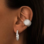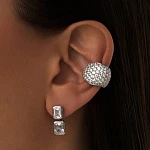 Крупный и в то же время изысканный кафф полностью усыпан сверкающей белой шпинелью. Широкий, объемный, доминантный — он не нуждается в дополнениях, становясь главным акцентом вашего образа.