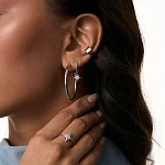 Модель выполнена из серебра 925 пробы и покрыта родием. Диаметр серьги 10 мм, ширина 5 мм.