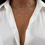 Колье-галстук выполнено из серебра 925 пробы и покрыто родием.