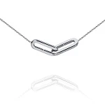 Центральный элемент — два подвижно соединенных овала. Первый овал декорирован паттерном в виде миниатюрных ромбов. Эта деталь придает колье глубину и поддерживает тренд на фактурность. Второй овал гладкий с обеих сторон, что создает гармоничный контраст.