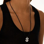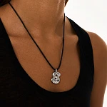Шнурок изготовлен из натуральной кожи и дополнен подвеской из серебра 925 пробы в родиевом покрытии.