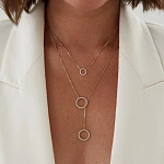 Изысканное и сексуальное колье из коллекции Эсмеральда никого не оставит равнодушным! Два круга из драгоценного металла усыпаны фианитами, сверкающими в лучах света. Длина изящной цепочки регулируется от 48 до 52 см, позволяя экспериментировать с образами. Модель покрыта жёлтым золотом, что добавляет ей завораживающее сияние и увеличивает износостойкость украшения.