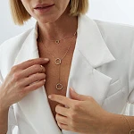 Колье выполнено из серебра 925 пробы с покрытием жёлтое золото. Размер подвесок составляет 15 мм.