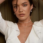 Чокер с жемчугом – воплощение нежной эстетики и природного очарования. Изящное украшение, сотканное из миниатюрных жемчужин, словно капельки лунного света, переливается на серебряной нити с благородным родиевым покрытием.