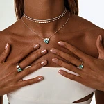 На изящной серебряной цепочке сияет гармоничное сочетание фианитов. Ярко-бирюзовый в огранке Эмеральд, как глубина тропического моря, манящая к новым горизонтам в обрамлении чистых, сверкающих белых фианитов в огранке Груша и Маркиз.