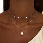 Колье изготовлено из серебра 925 пробы в родиевом покрытии.