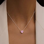 Колье на тонкой серебряной цепочке идеально подходит в подарок для близкого человека. Тактильно приятная подвеска с розовым фианитом в огранке сердце, надёжно закреплённым в глухой оправе, мягко скользит по цепочке. Каждое движение подчёркивает естественную грацию. Колье создано с любовью на нашем производстве MIE ATELIER.