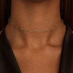 Тонкие, витые ромбовидные звенья создают легкую и воздушную композицию, которая изящно обвивает шею, подчеркивая ее красоту и грацию.