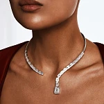 Анатомическая форма колье идеально облегает линию шеи, а инкрустация из фианитов в огранке Эмеральд роскошно сверкает при каждом движении. Крупный подвижный фианит на одном из кончиков колье — дизайнерский штрих, который не только отсылает к лучшим традициям ювелирных домов, но и добавляет динамики украшению. Эксклюзивный паттерн бренда MIE на внутренней стороне колье и удобный раскрывающийся замок подчеркивают, что истинная ценность заключается в продуманности каждой детали.