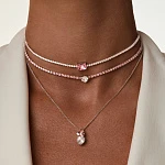 Теннисное колье-чокер Simone из коллекции Wanderlust с розовыми и прозрачными фианитами — феерия элегантности и стиля, вдохновленная культовым фильмом «Розовая пантера» и несравненной Симоне Клузо.