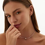 Вы можете носить колье-чокер как самостоятельное украшение, так и в тандеме с другими изделиями из сета Simone. Например, с браслетом, в котором также сочетаются розовые и прозрачный фианиты. Идеальная пара для долгожданного дня, особенного вечера и незабываемой ночи.