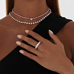 Кольцо изготовлено из серебра 925 пробы и покрыто родием. Диаметр фианитов — 5 мм. Ширина кольца — 6 мм. Толщина кольца — 3 мм.