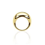 Крупное, широкое кольцо из гладкого серебра в покрытии желтое золото безусловно подчёркнет изящество ваших рук. Несмотря на внушительный размер, оно удивительно легкое. На внутреннюю сторону кольца нанесен фирменный паттерн MIE, что добавляет украшению эксклюзивности.