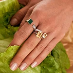 Два акцентных элемента – зеленый агат в огранке Эмеральд и ряд прозрачных фианитов в огранке Багет – создают гармоничное сочетание, подчеркивающее элегантный минимализм. Дизайн кольца позволяет легко регулировать размер прямо на пальце, обеспечивая идеальную посадку и комфорт в носке. Его универсальный и всегда актуальный дизайн делает его прекрасным дополнением к любому образу: от вечернего до повседневного.