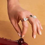 Это кольцо гармонично сочетает в себе мягкое мерцание трёх жемчужин с ослепительным сиянием крупного белого фианита в огранке Эмеральд. Разомкнутый дизайн позволяет регулировать размер кольца на пальце.