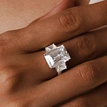 Три фианита в благородной огранке Эмеральд образуют идеально сбалансированную композицию: крупный центральный камень в обрамлении двух чуть поменьше. Их строгое и глубокое сияние говорит о безупречном вкусе, наследуя традиции эталонной ювелирной классики. Анатомически идеальная шинка со специально скругленными гранями делает это роскошное кольцо удивительно комфортным в носке!