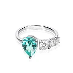 Роскошный ярко-бирюзовый фианит в огранке Груша, напоминающий лазурные тропические воды, дополнен композицией из трех сверкающих белых фианитов в огранке Круг. Разомкнутый дизайн позволяет регулировать размер кольца на пальце, напоминая, что настоящая свобода заключается в возможности быть собой без ограничений.