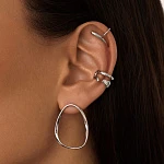 Эти выразительные серьги-пусеты воплощают современный взгляд на ювелирную эстетику. Акцентный элемент в виде искаженного овала из серебра 925 пробы с благородным родиевым покрытием, придающим украшению холодный зеркальный отблеск и исключительную устойчивость к повседневному износу.