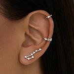 Эти изысканные асимметричные серьги переносят романтику ночного неба в мир ювелирных украшений. Комплект состоит из двух разных моделей — классического гвоздика и изящного клаймбера-созвездия, вместе создающих современный космический дуэт.