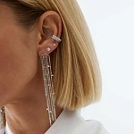 Длинные серьги из коллекции «Невесомость» — аксессуар, который добавит изящности любому образу! Отличительная черта украшений из этой коллекции — отсутствие серебряного обрамления у камней. Благодаря такому решению наших дизайнеров изделие выглядит максимально воздушно и изысканно. Семь плавно спускающихся вниз цепочек инкрустированы прозрачными фианитами — при ваших движениях они элегантно покачиваются и переливаются на свету. Невероятный акцент вашего наряда!