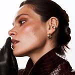 Эти крупные серьги поражают своим уникальным дизайном — изящные тонкие жгуты разного размера создают впечатляющую конструкцию, полную легкости, воздушности, но в то же время благородства стиля old money! Несмотря на свою массивность, серьги выглядят удивительно грациозно благодаря фактуре мятого металла. Игла серег занижена, что позволяет эстетично скрыть прокол в ухе.