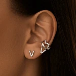 Серебряная моносерьга с буквой V и фианитами — это стильный акцент, подчеркивающий индивидуальность и добавляющий образу современную изюминку. Изящная серьга-пусет станет оригинальным подарком для близкого человека или эффектным способом выразить собственную уникальность.