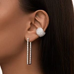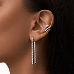 Прямоугольная, вытянутая форма придает серьгами современный, стильный вид. Дорожка прозрачных фианитов в огранке Багет, расположенных как с внешней, так и с внутренней стороны, наполняет серьги волшебным сиянием, позволяя им искриться при каждом движении.