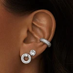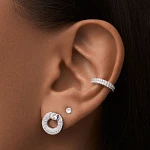 Серьги изготовлены из серебра 925 пробы и покрыты родием. Внешний диаметр - 12 мм. Внутренний диаметр — 6 мм. Размер центрального фианита — 4*4 мм.