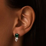 В центре композиции лабораторно выращенный изумруд в огранке Ашер, чей глубокий и насыщенный цвет подчеркнут россыпью сверкающих белых фианитов. Фирменная деталь MIE: заниженная игла серьги, помогающая эстетично скрыть прокол в ухе. Нано-изумруд обладает всеми свойствами своего натурального аналога, оставаясь при этом этичным и осознанным выбором.