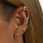 Холодный блеск серебра и теплое сияние золота сочетаются в этих изысканных серьгах. Серьги в форме вытянутой капли, повторяющей изгиб уха, воплощают тренд на биколор в духе элегантности вне времени. Две тонкие полосы — словно отражение баланса между сдержанной роскошью и современным шиком.