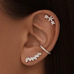 Эти изысканные зажимные серьги из серебра 925 пробы воплощают утонченную гармонию природы и ювелирного мастерства. Фианиты в изящной огранке маркиз, выложенные в форме нежной веточки с листьями, создают эффект живого мерцания, переливаясь мягкими бликами при каждом движении.