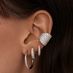 Этот вариант серёг в среднем размере: диаметр — 14 мм, поэтому подойдёт для девушек, которые предпочитают яркие акценты. Станет эффектным элементом вечернего или выходного образ. Ну а если ваш дресс-код позволяет, то рекомендуем сочетать со строгим костюмом. Получится дерзко и стильно.