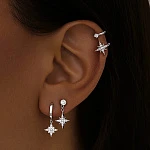 Серьги-конго со звездой — очаровательное сочетание классики и романтичного мерцания. Эти изящные украшения из серебра 925 пробы с родиевым покрытием дополнены плоской подвеской в форме звезды, усыпанной сверкающими фианитами, которые создают эффект ночного небосвода при каждом движении.