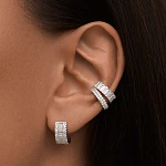 Главной особенностью этих серег являются три дорожки из сверкающих фианитов. По центру расположены более крупные камни в огранке Багет, которые искрятся и переливаются при каждом движении. Они обрамлены россыпью фианитов в огранке Круг. Базовый, но интересный дизайн позволяет носить их как на торжественных мероприятиях, так и в повседневной жизни.