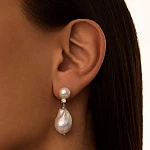 В этих очаровательных серьгах воплощена вся страсть и роскошь Сицилии. Крупная барочная жемчужина, подвешенная на изящной цепочке, дополнена круглой жемчужиной и сверкающим белым фианитом в огранке Круг. Фирменная деталь MIE: заниженная игла серьги, что позволяет эстетично скрыть прокол в ухе.