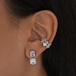 Крупные фианиты идут в огранке Эмеральд. Популярная в эпоху ар-деко огранка вновь на пике популярности, и не случайно! Очень тонкая ювелирная работа позволяет создать на камне ступенчатые грани: фианит будто бы вспыхивает ярким светом при попадании на него лучей солнца. Эффектно и обворожительно!