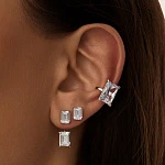 Особенность этих серег – виртуозное сочетание лаконичной формы джекетов и сложной игры света в прямоугольных фианитах. Вытянутые камни расположены вертикально, визуально удлиняя шею и придавая образу особую утонченность.